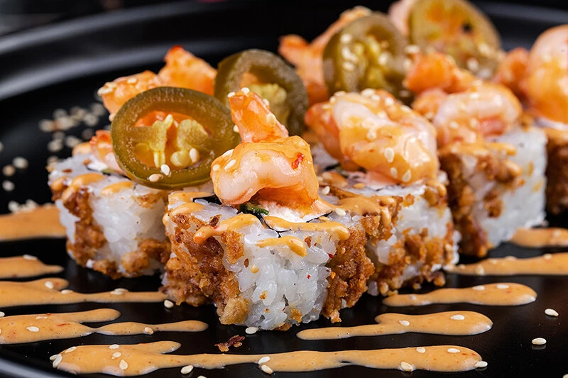 Ролл с креветкой, халапеньо и луком фри 8 шт
